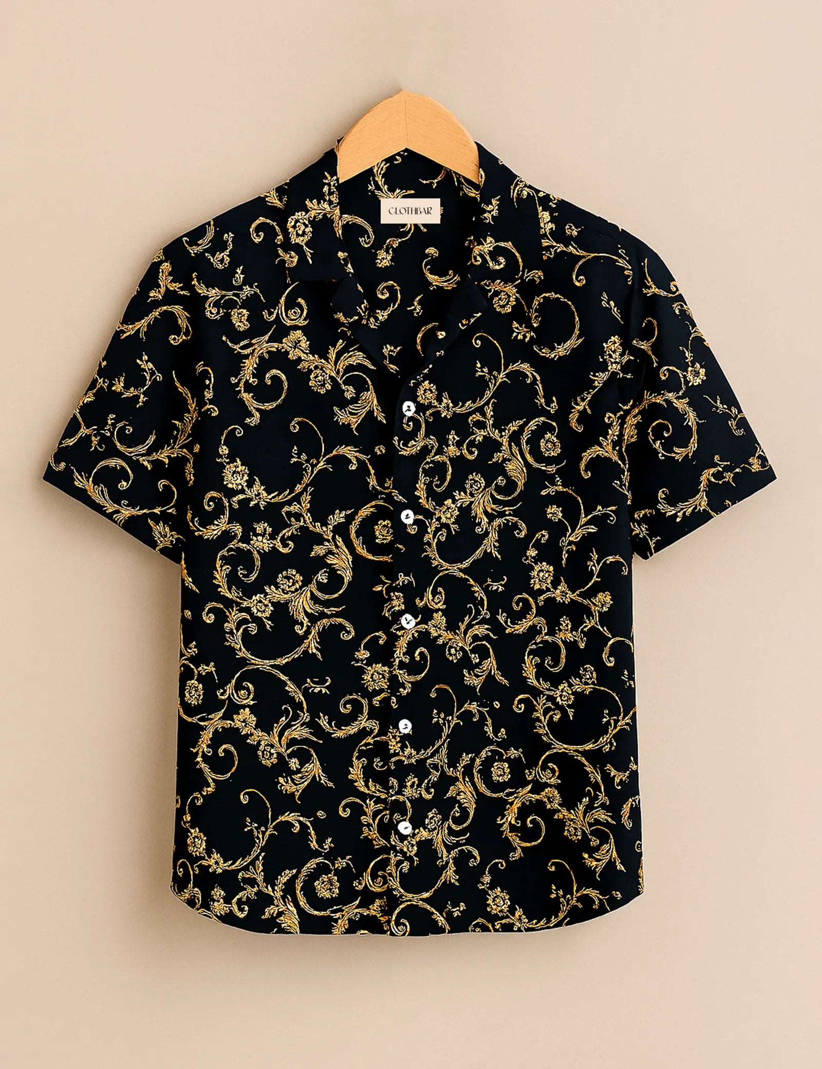 Black Regal Swirl Design Men’s Half Sleeve Shirt GenZ Edition